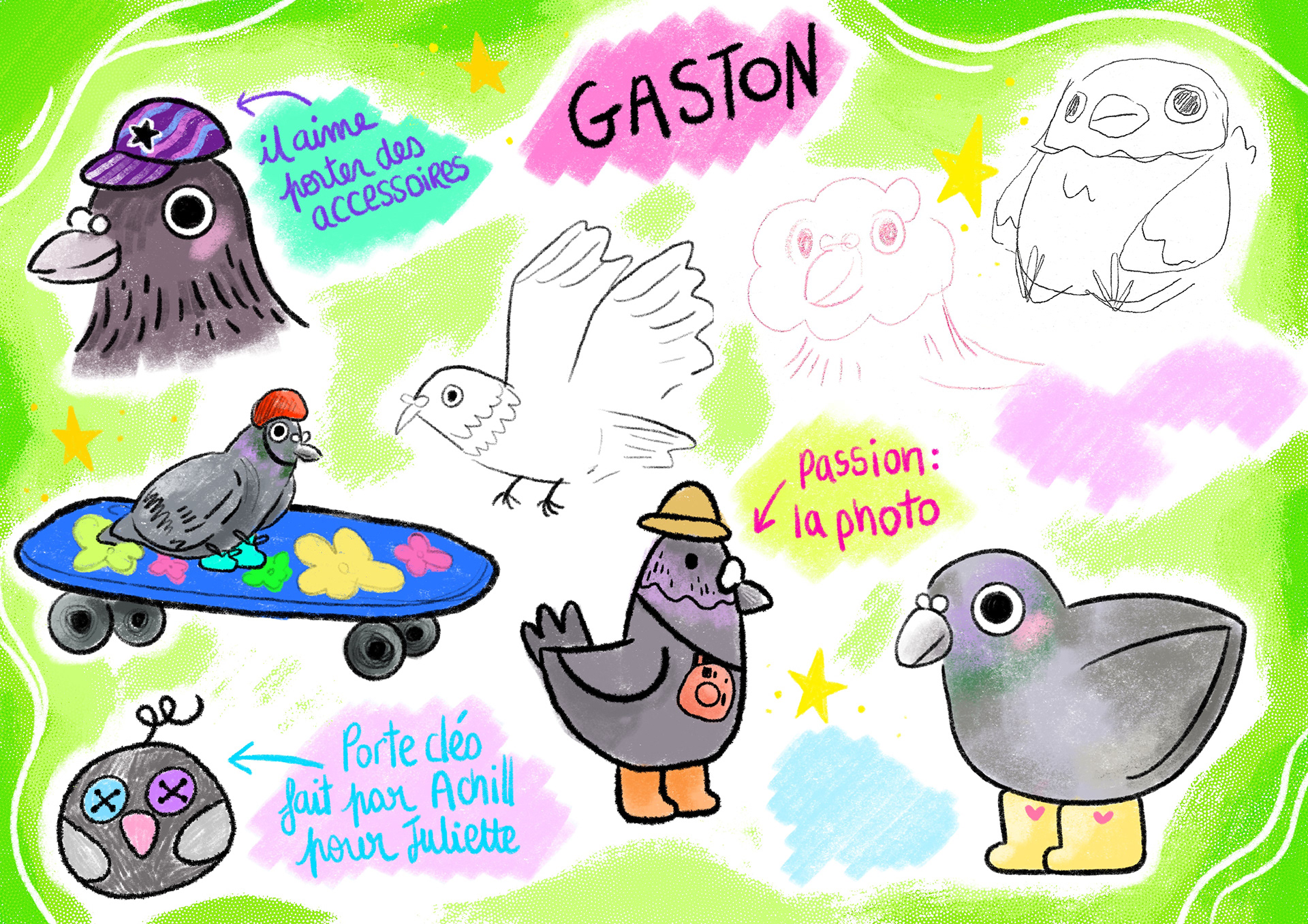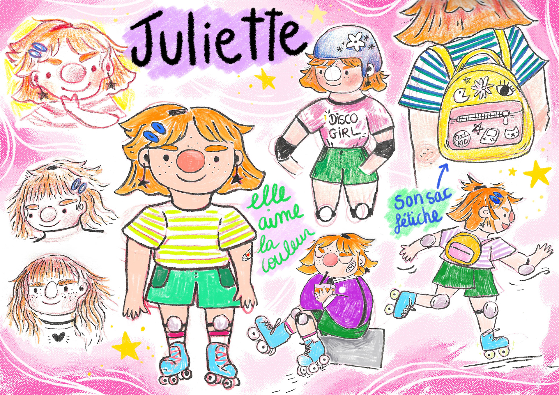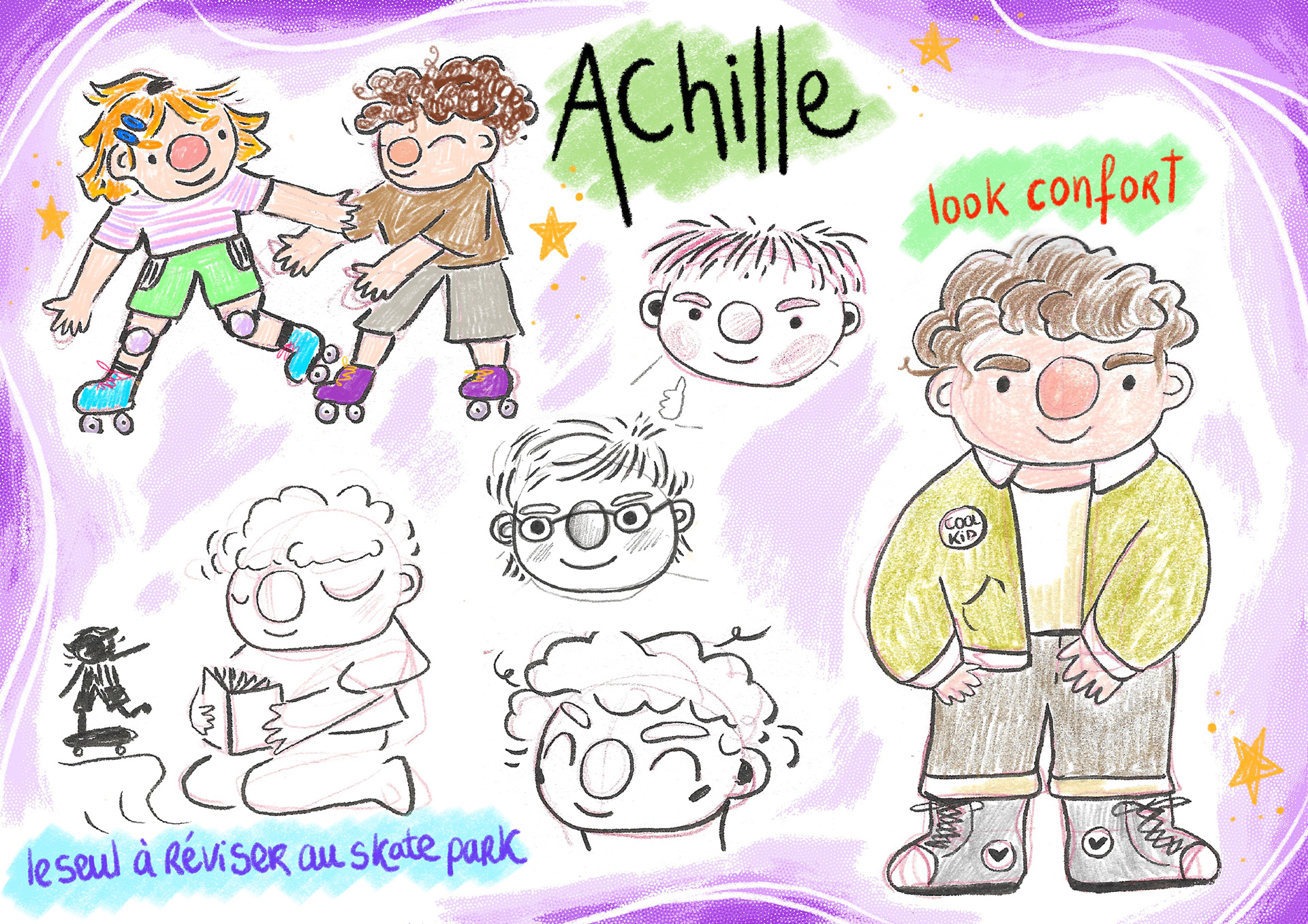 Juliette, Achille and Gaston are the characters designed for this factice educational game project “Juliette discovers the Skatepark” targeting children aged from 8 to 12yo.