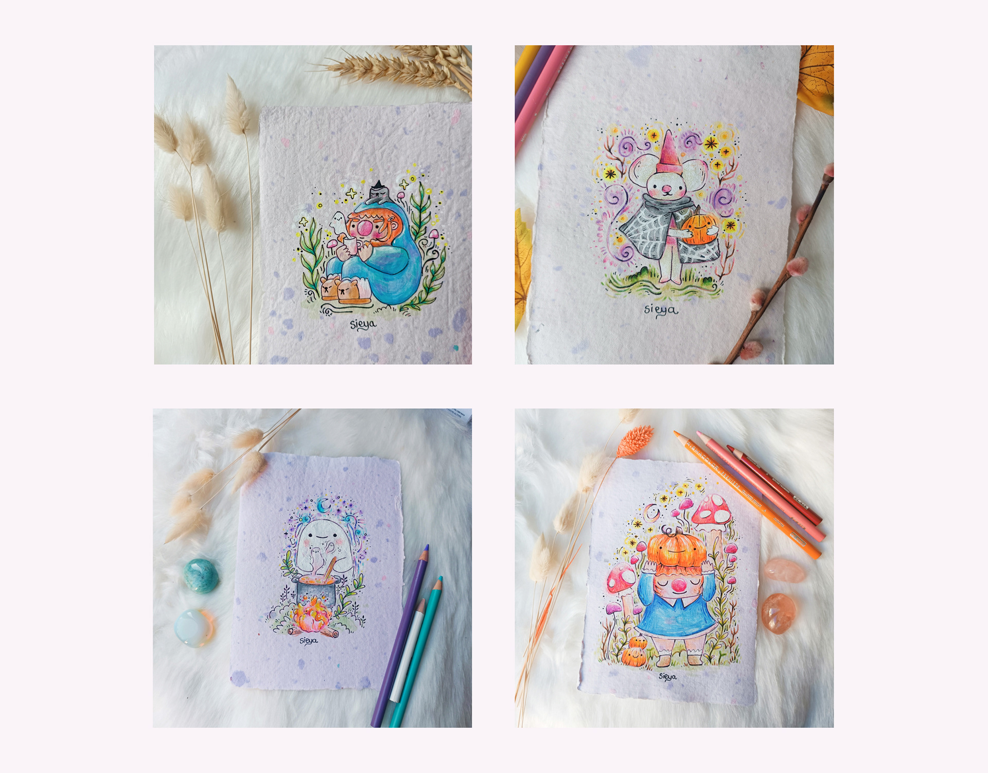 Collections of illustrations based on the theme of autumn.